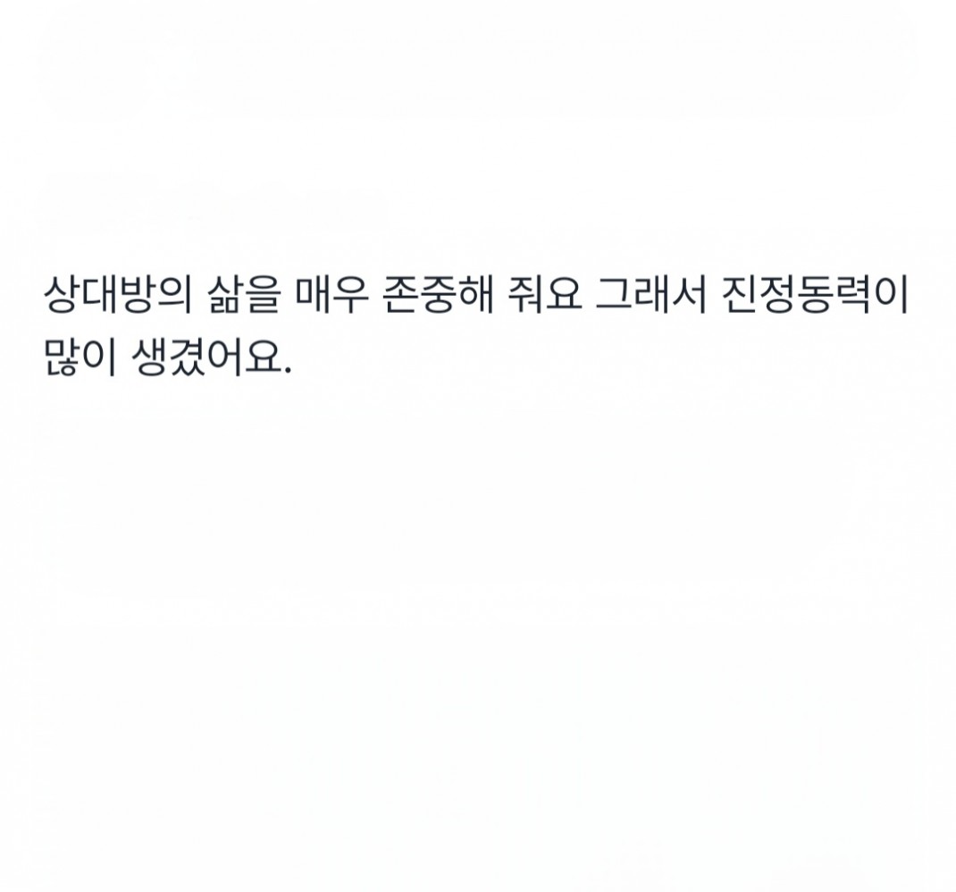 상대방의 삶을 매우 존중해 줘요 그래서 작성자관리자 등록일 25-09-04 조회39회 본문 상대방의 삶을 매우 존중해 줘요 그래서 진정동력이 많이 생겼어요. 고심하던 일이 길이 보이는 듯해서 한결 마음이 가볍습니다. 제가 듣고 싶은 말과 원인과 답을 얻었습니다. 목록 글쓰기